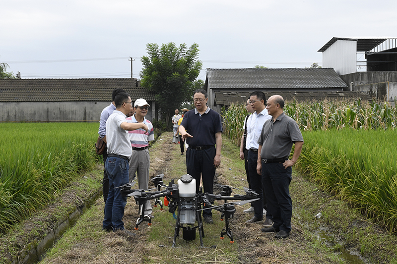 在绵竹某地,王建明局长实地查看项目进展情况,认真听取成果汇报,站在田间地头与现场人员亲切交谈,当看到当地农村合作社负责人老邹帮忙用无人机为作物喷洒叶面阻控剂时,王建明局长上前向他表示感谢:“谢谢你们来帮忙。”“我们才应该说感谢”老邹高兴的回答:“以后我们就能放心的吃自家种的大米了,我们有干劲。”