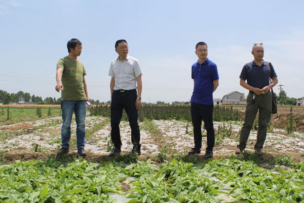 胡斯宪(左二)主任视察绵竹试验大田