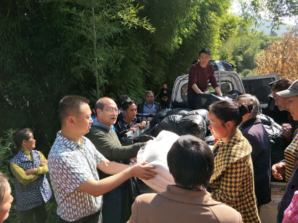 11月9日,成测中心刘俊思书记一行到中心对口扶贫村--罗咀村检查扶贫工作落实情况,刘书记这次带着中心为贫困村民购置的39棉被和部分衣物送到贫困村民手中。