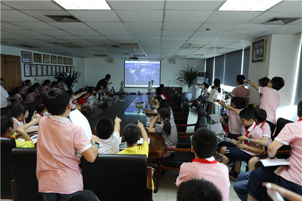师生们在院十一楼会议室观看了四川省地质矿产勘查开发局建局60周年纪念视频,让小学生们了解了地矿局发展的历史和取得的成绩。随后,来自成测中心的陈彦庆老师带领小学生们观看了岩石薄片,从微观视角让小学生们了解了岩石的结构和组成,镜下五颜六色的矿物激发了小学生们对探索地质科学的兴趣。省地调院高级工程师杨显华对小学生们作了《走进“天眼”》的科普讲座,从什么是遥感技术、遥感技术的用途等系统的做了介绍,深入浅出的讲解、形象的比喻、精彩的互动引来了孩子们的阵阵欢呼。