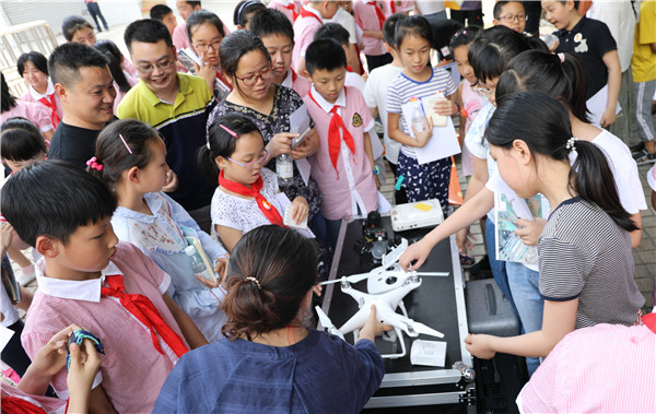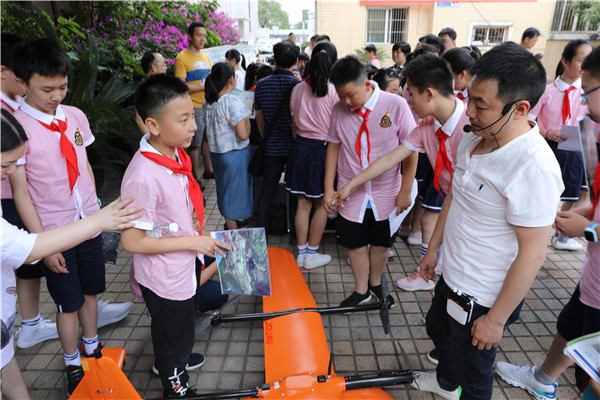 最后,小学生们来到省地调院,参观了无人机设备,一个个好奇的小脑袋围着无人机,不时的发出惊叹。省地调院遥感技术高级工程师宋云耐心的讲解了无人机的种类和基本用途,拓宽了小学生们的视野。