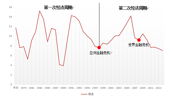 (备注:1989年的经济回落并非我国经济本身出了问题,而是政治风波、西方制裁等政治因素影响,在第二年又重回快速增长趋势,故仍算作第一次经济周期。)