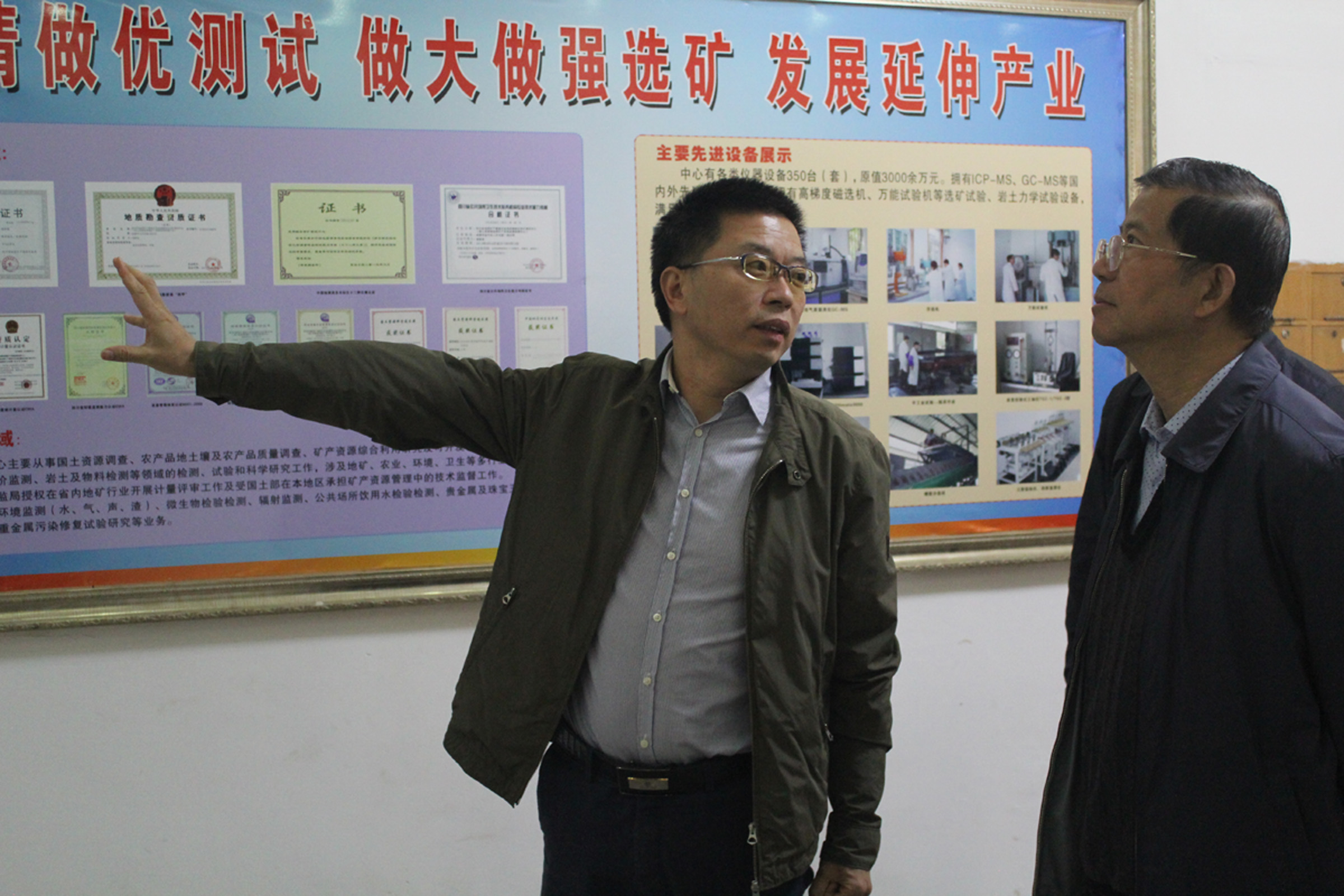 胡斯宪(左)向彭渝(右)介绍成测中心情况